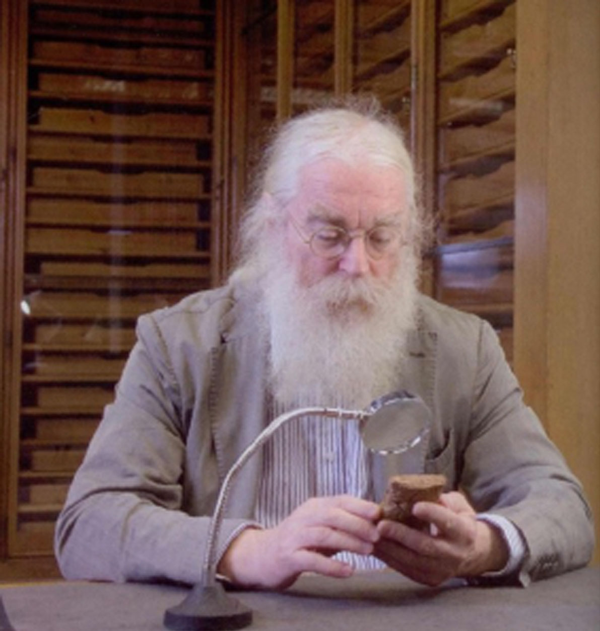 Dr. Irving Finkel with the clay tablets that he used to reveal the design of Noah’s Ark when it was built some time around 2400 BC